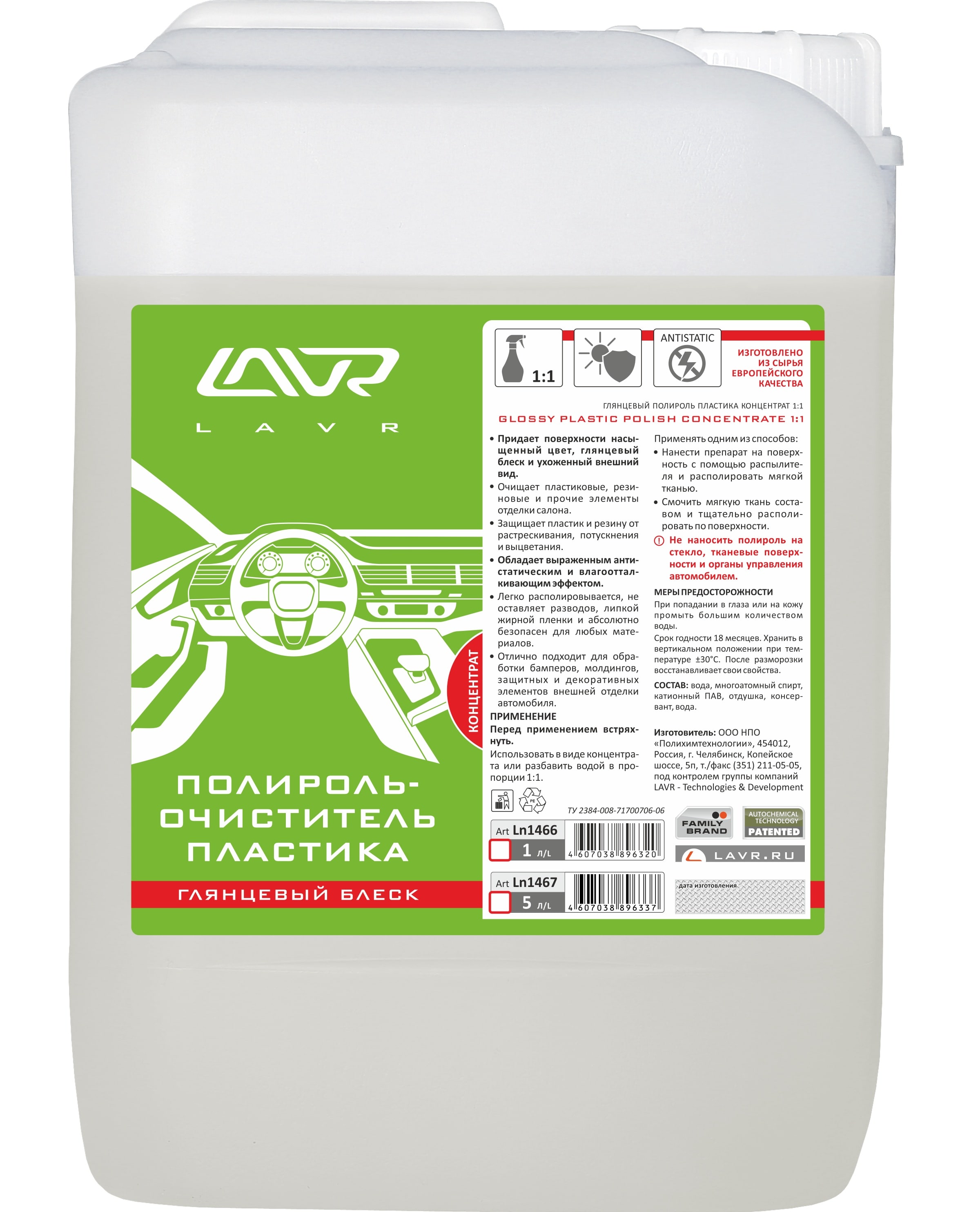 Полироль-очиститель пластика LAVR "Глянцевый блеск" концентрат (1:1) (LN1467) 5л