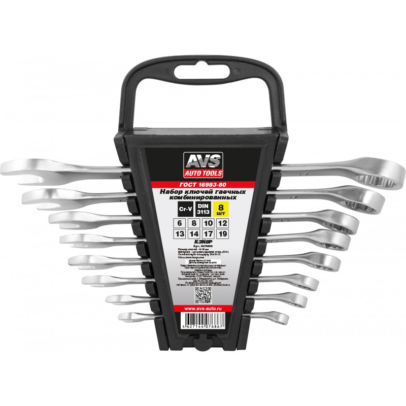 Набор ключей гаечных комбинированных на держателе (6-19 мм) (8 предметов) AVS K3N8P