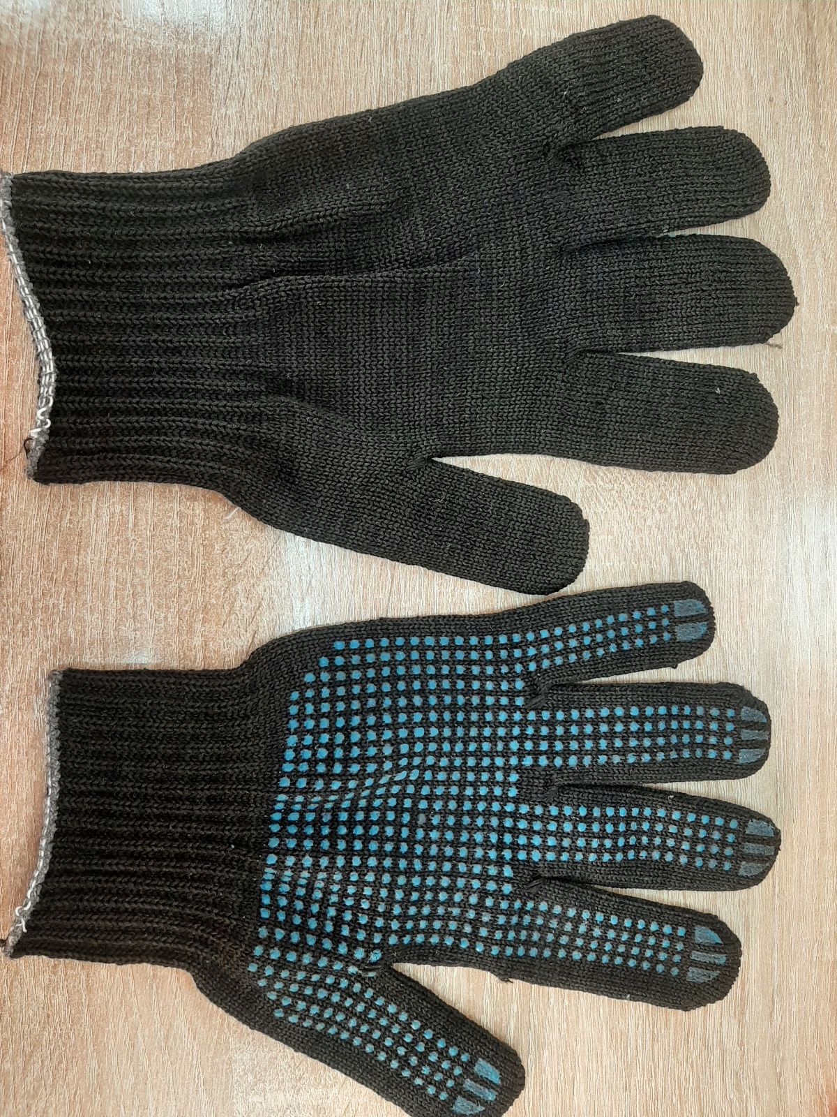 Перчатки 6 нитей черные Люкс с ПВХ ХБ