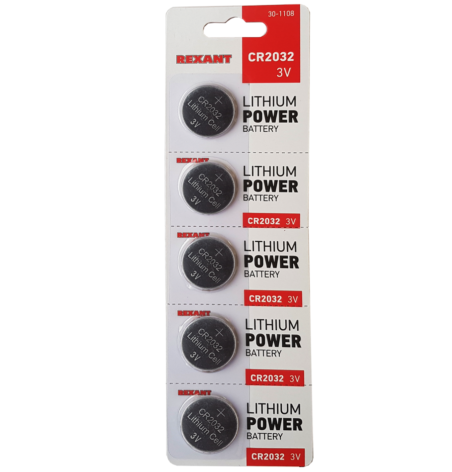 Батарейка CR2032 REXANT 3V 220mAh литиевая 30-1108