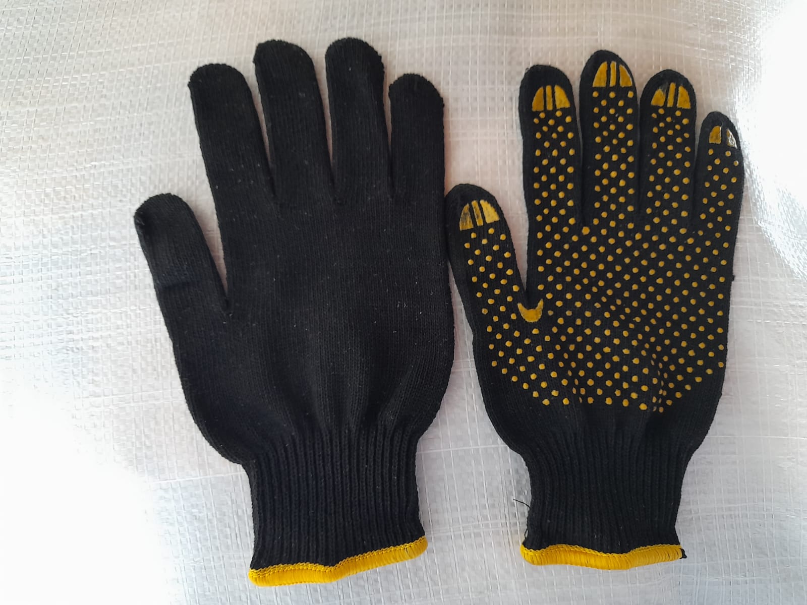 Перчатки 5 нитей черные с ПВХ (ЖЕЛТЫЙ) двойной оверлок (ЖЕЛТЫЙ) спец. (360)