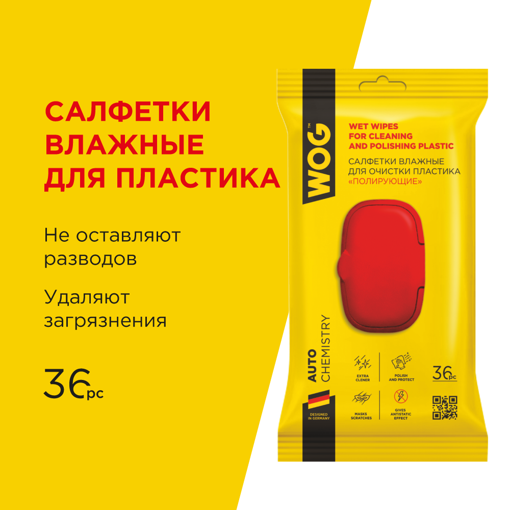 Салфетки влажные WOG для очистки пластика "Полирующие" 36 шт WGC0661 (40)
