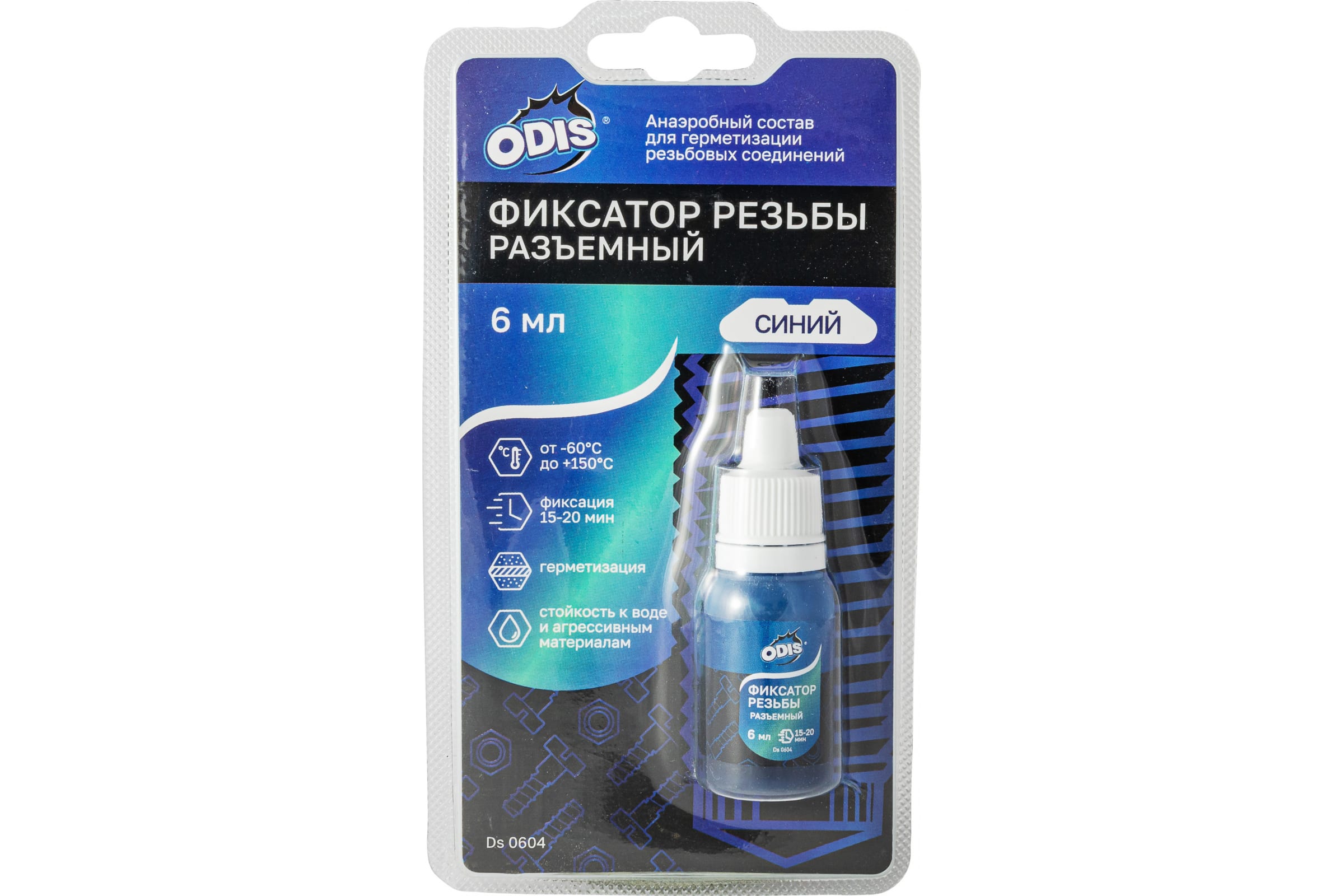 Фиксатор резьбы разъёмный ODIS синий в блистере 6 мл Ds0604B предназначен для герметизации и фиксации резьбовых соединений (в том числе и трубных), которые будут разбираться достаточно редко, либо при эксплуатации на них действует значительная вывинчивающая сила (вибрация и т. д.).