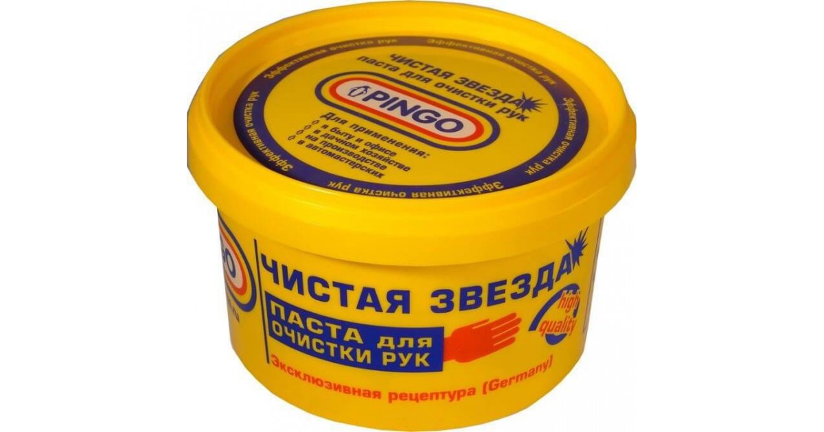 Паста для очистки рук "Чистая звезда" - это нейтральное средство для эффективной очистки и удаления масла, жира, типографской краски, плиточного клея, битума, антикоррозийных материалов и других загрязнений с кожи рук. Обладает антисептическим действием, не сушит кожу рук и не вызывает аллергических реакций. Значительно экономичней мыла и других моющих средств.