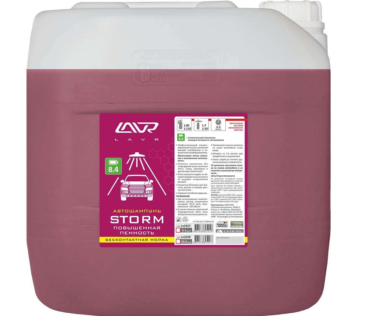 Автошампунь LAVR для бесконтактной мойки STORM Повышенная пенность 8.4 (LN2339) 20л