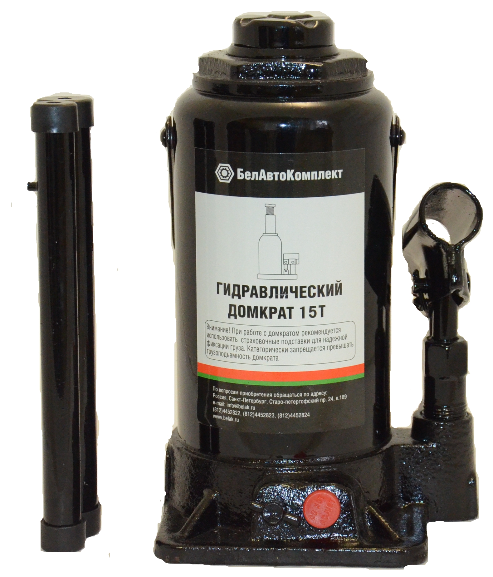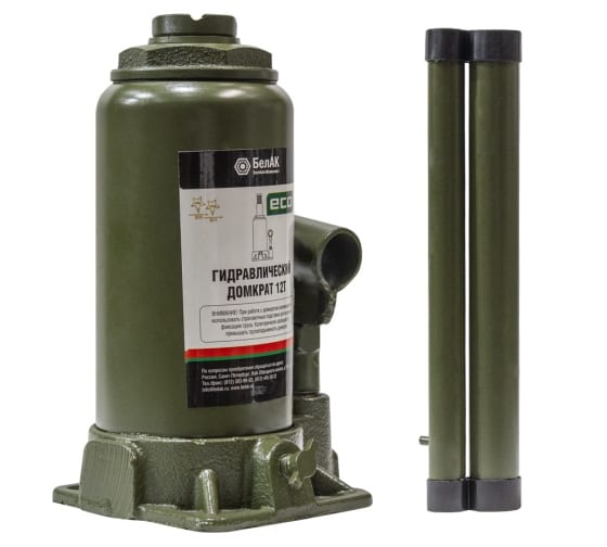 Домкрат гидравлический бутылочный 12т БелАК(БелАвтоКомплект)(РФ)(БАК.70018) серия "ЭКО"