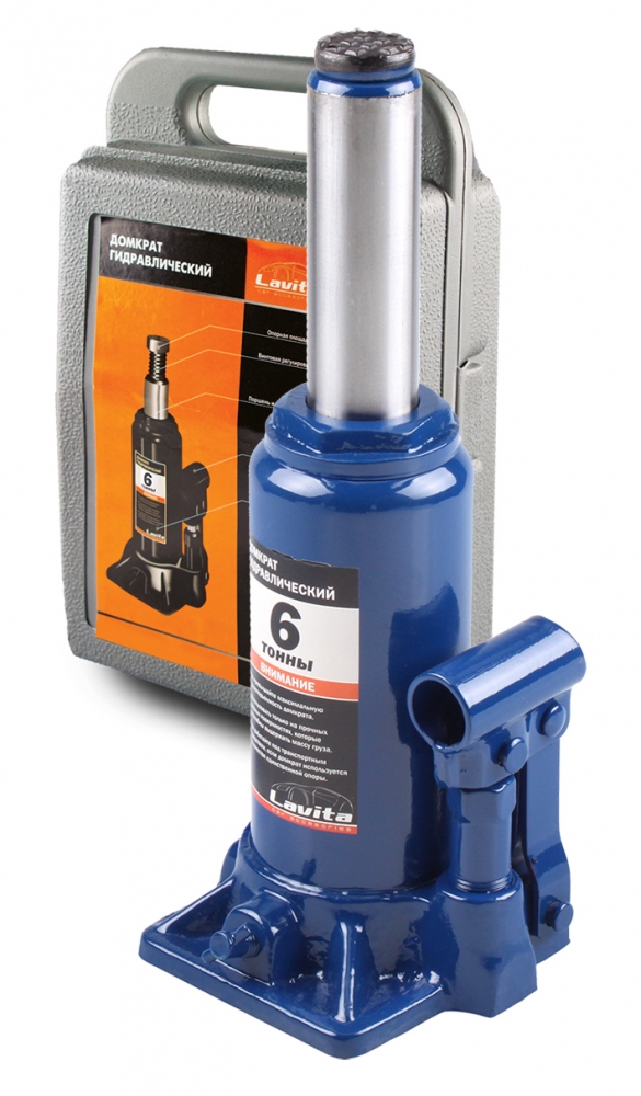 Домкрат гидравлический бутылочный 6т Lavita 200-385 мм, пластиковый кейс LA JNS-06PVC