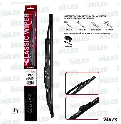 Щетка стеклоочистителя каркасная MILES 24"/600 мм CWC24AC (+ мультиадаптер)