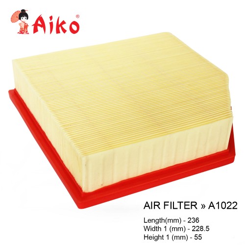 Воздушный фильтр AIKO представляет собой устройство в системе воздухозабора двигателя, предотвращающее попадание в двигатель всасываемых с воздухом пыли, смога, выхлопных газов и других частиц, содержащихся в воздухе. Расположенные в воздушных фильтрах AIKO фильтрующие элементы состоят из трех слоев, а также имеют грубый ребристый внутренний слой и гладкий внешний. Такая конструкция позволяет наиболее эффективно блокировать частицы различных размеров. Для предотвращения возможной деформации фильтрующие элементы специально перфорируются и равномерно укладываются. Компания AIKO также производит цельнотканевые воздушные фильтры (FFAF) для автомобилей, предусматривающих использование этой новейшей технологии.