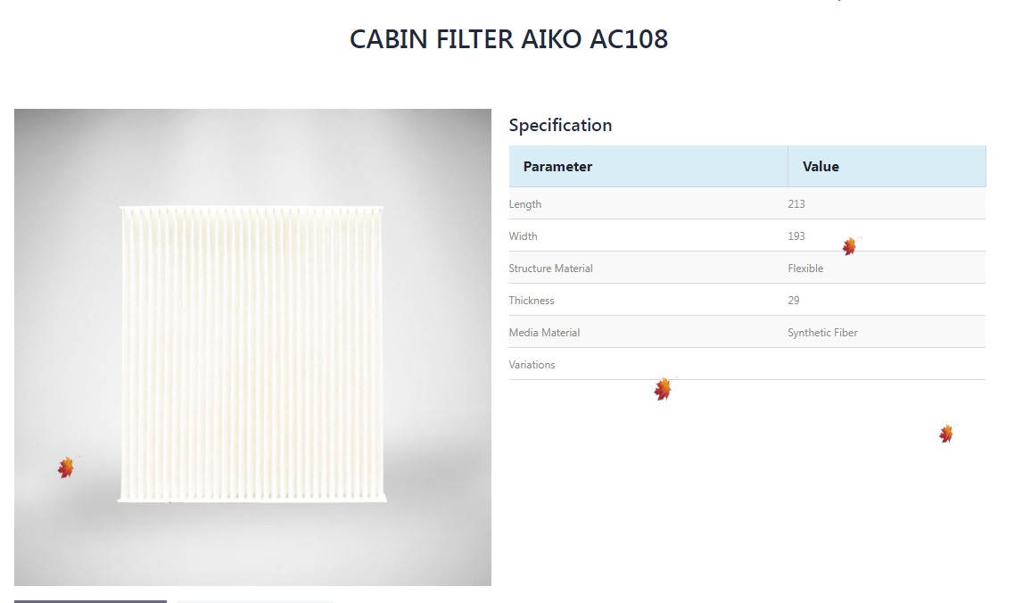 Салонные фильтры Aiko