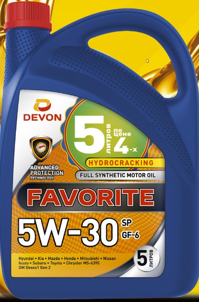 Масло Devon МОТОРНОЕ FAVORITE 5w-30 SP,GF-6 (синт.) 5л.