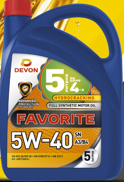 Масло Devon МОТОРНОЕ FAVORITE 5w-40 SN,A3/B4 (синт.) 5л.